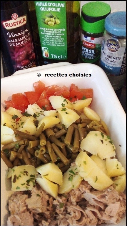 Ajoutez l’huile et le vinaigre et mélangez , servir bien frais.